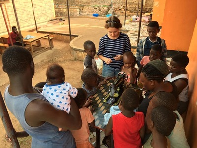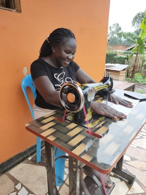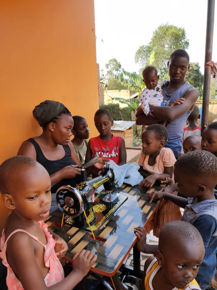 Meanwhile, Ola our volunteer, has just arrived at our home in Masindi with a wonderful gift. And so sewing workshops began for our aunts and chikdren. where they get used to the Singer machine - who remembers it? maybe you have some memories related to it?)
